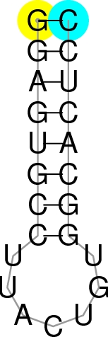 Number of base pairs in stems [